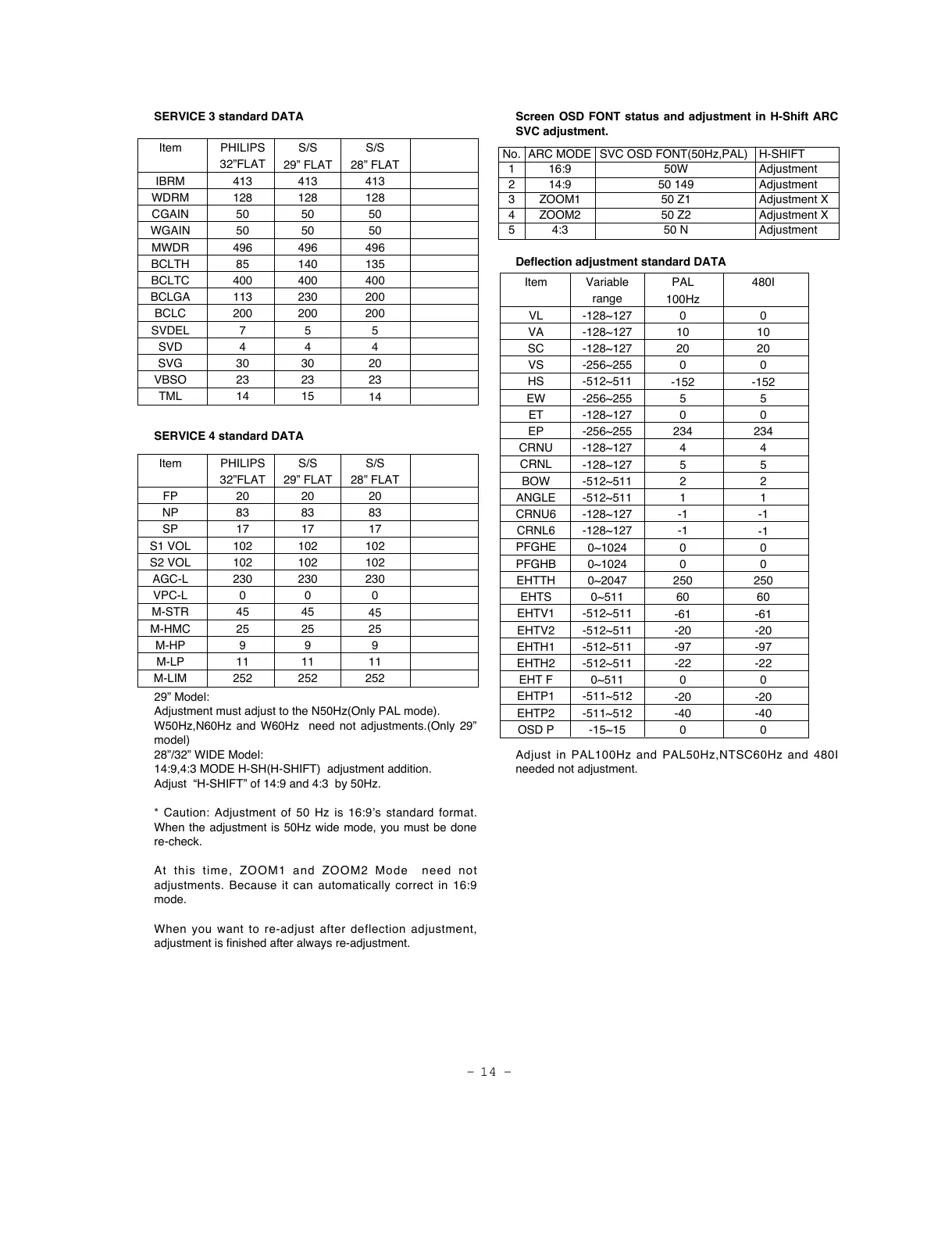 Adjust ÒH-SHIFTÓ of 14:9 and 4:3 by 50Hz.
