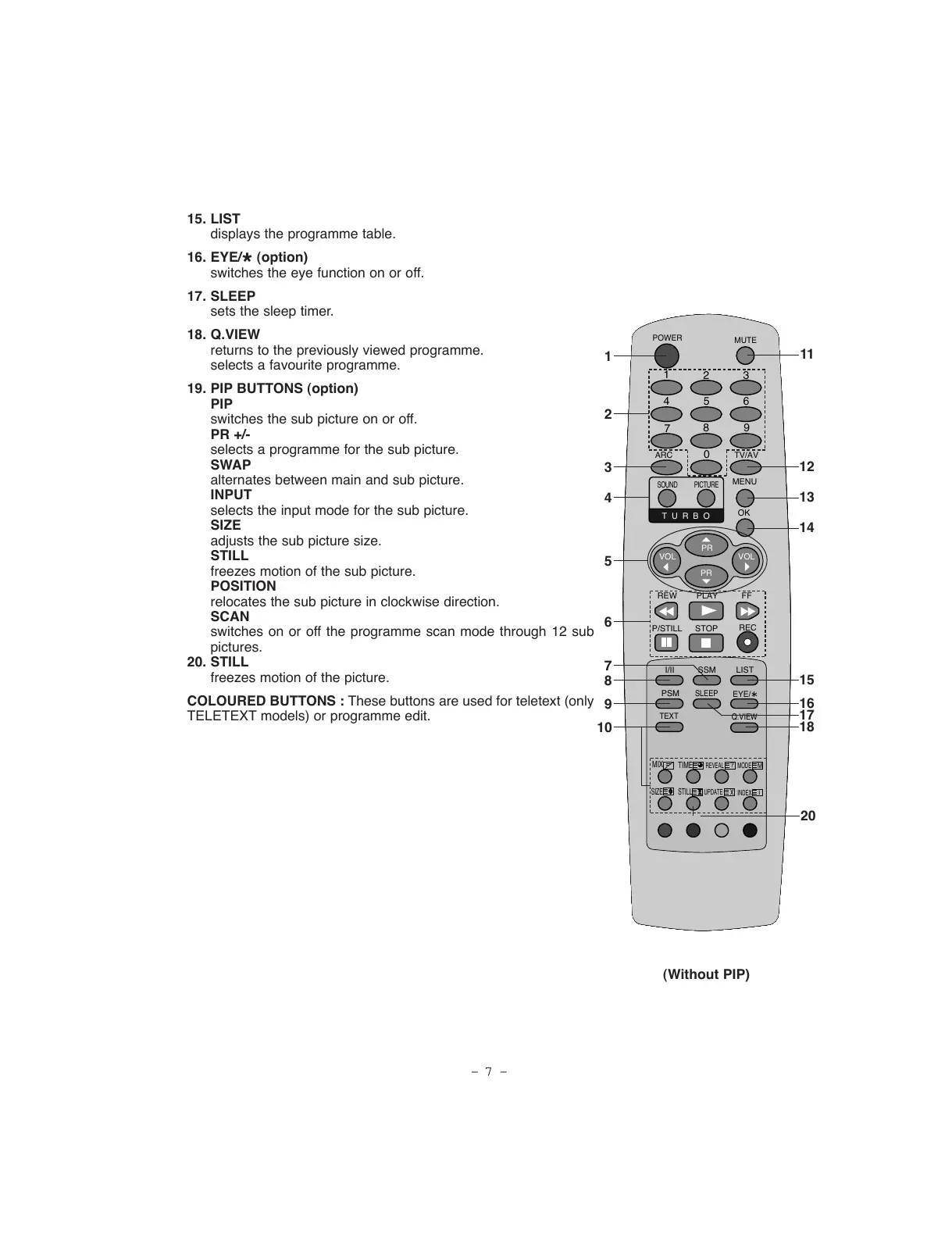COLOURED BUTTONS : These buttons are used for teletext (only