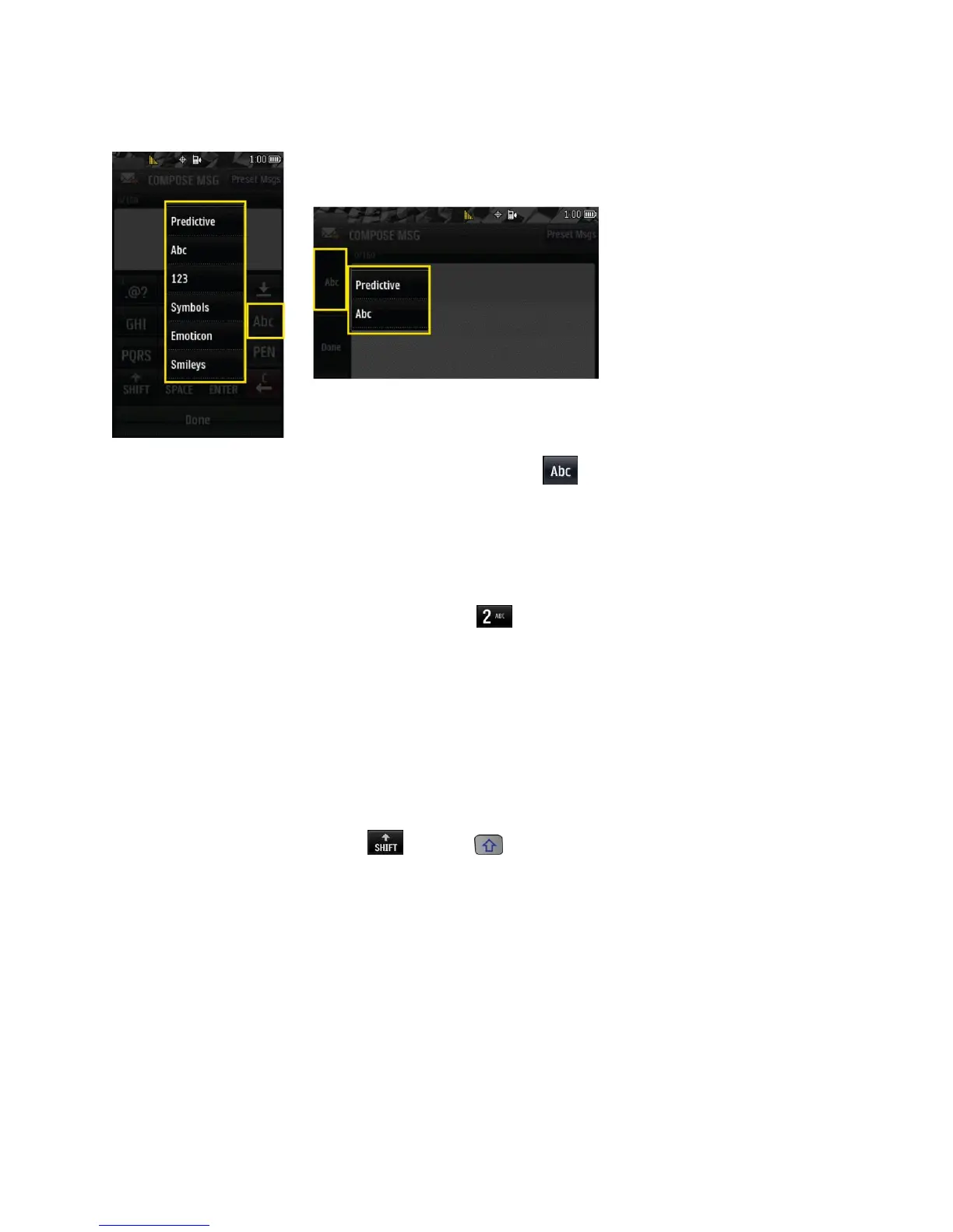 1. Select the predictive text input mode.