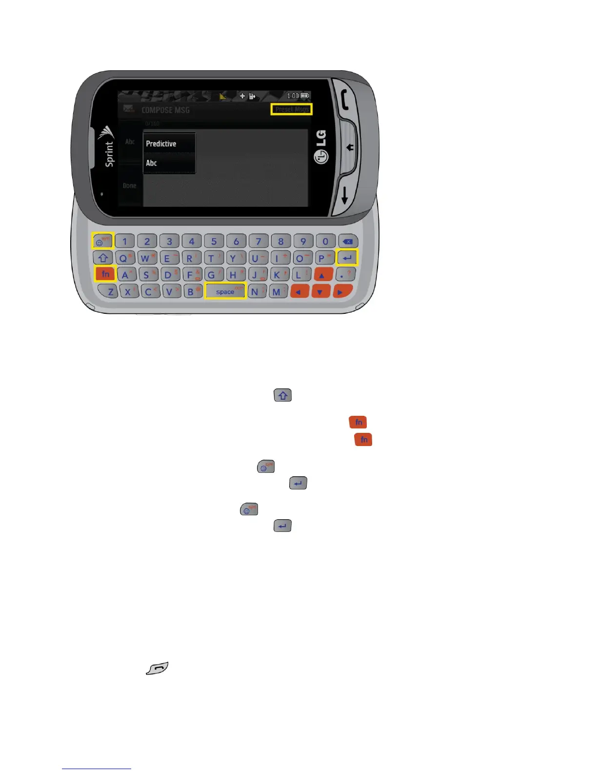1. From a screen where you can enter text, touch Abc and select whether to turn the