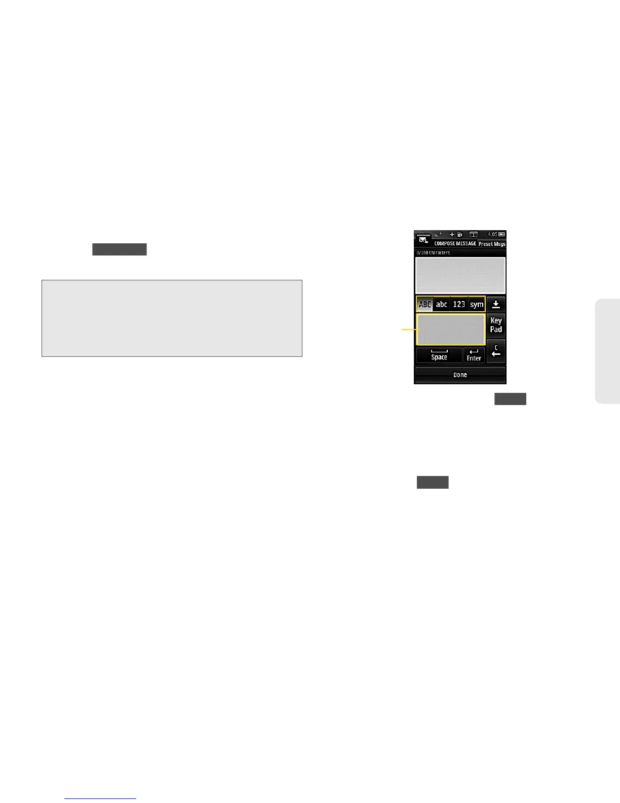 Note: Preset messages make composing text messages