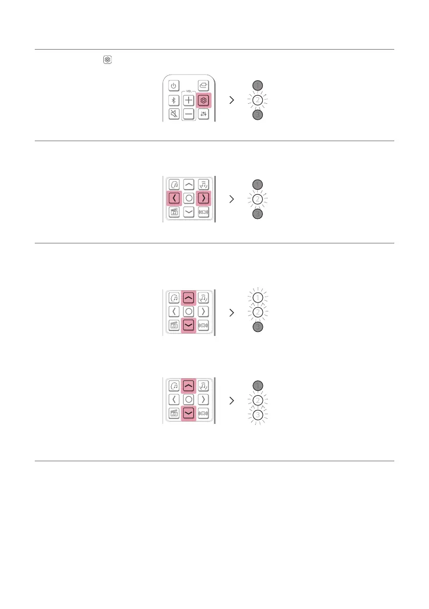 c While the LED2 is blinking, press Up/Down button. If the surround sound setting is on, LED1 blinks