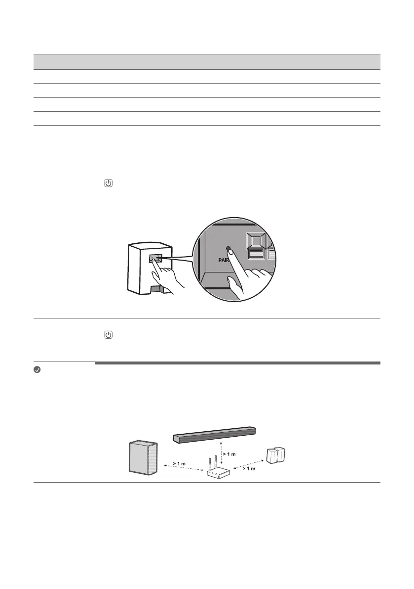 b Press the PAIRING button on the back of the rear speaker. Check if the LED on the rear speaker is