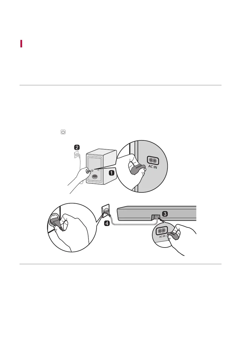 d Plug the power cable connected to the soundbar into an outlet.