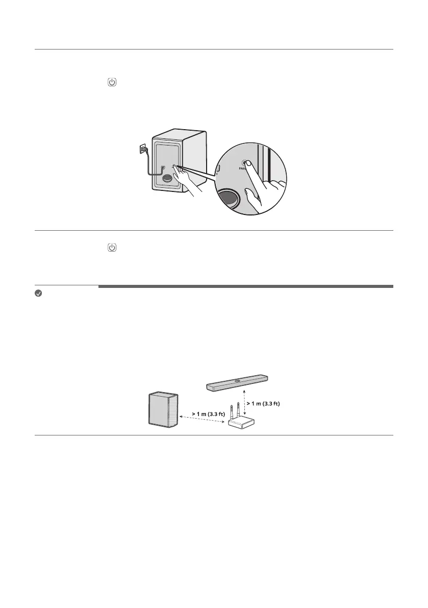 • To prevent wireless interference, maintain a distance of at least 1 m (3.3 ft) between the soundbar or
