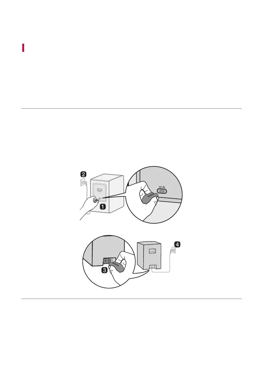 c Plug the power cables into the wireless rear speakers and arrange the power cables.