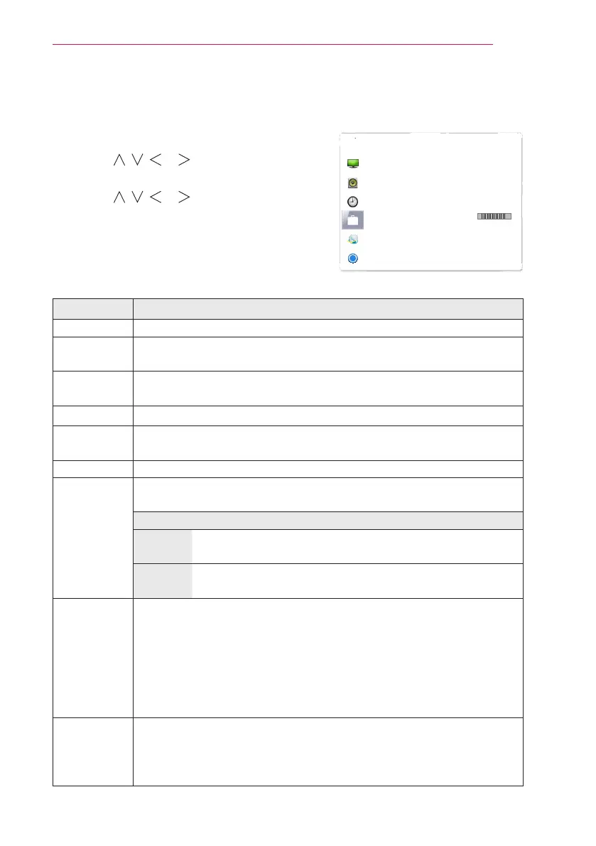 3 Use the , , or button to set up the