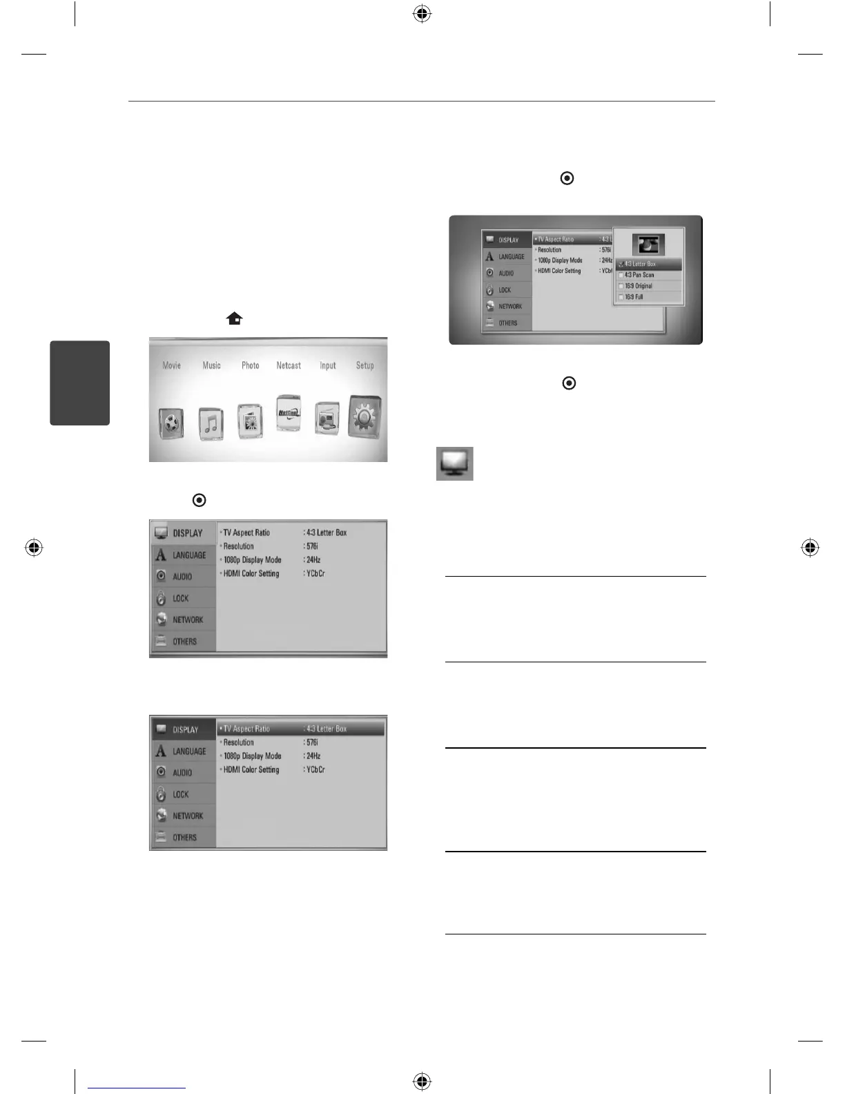Select a TV aspect ratio option according to