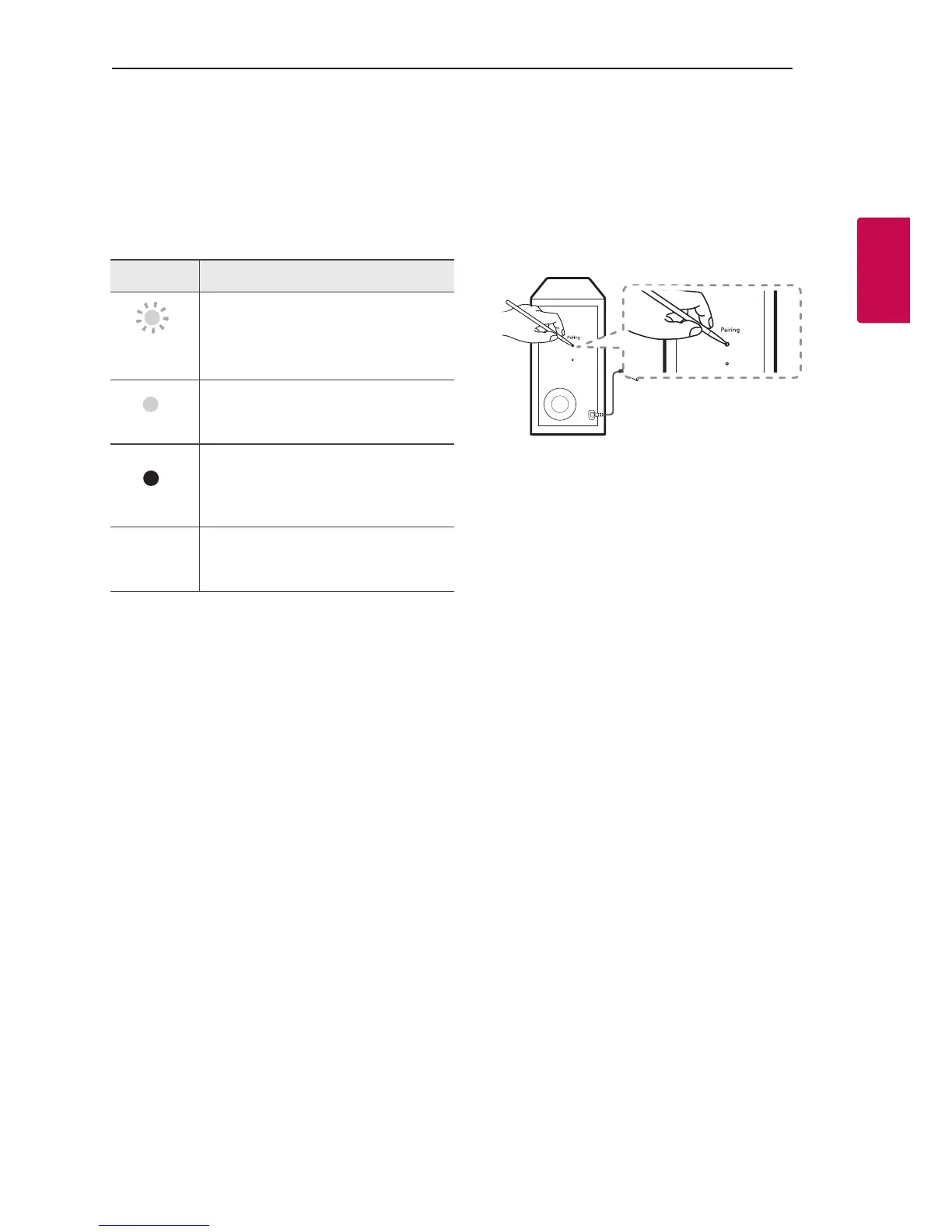 - Green LED on the rear of wireless subwoofer