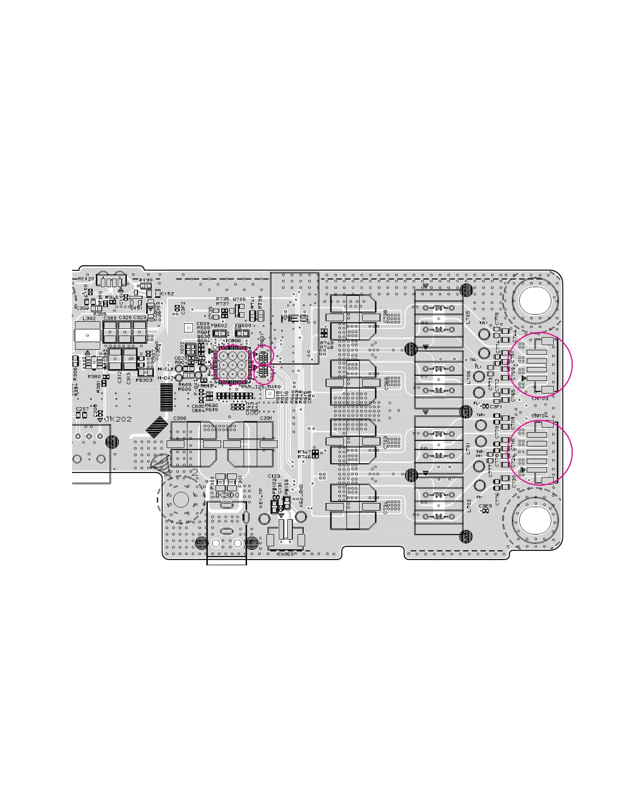 3) If PWM IC out is ok and speaker out (FL+/-, FR+/-, TWL+/-, TWR+/-) has DC voltage, replace MAIN board.
