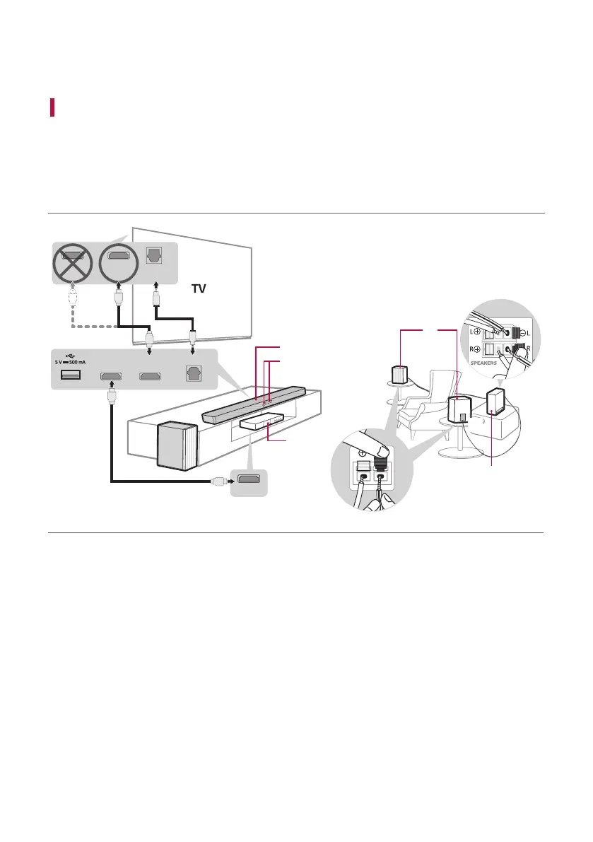 a Connect the sound bar to your TV via an optical cable or an HDMI
