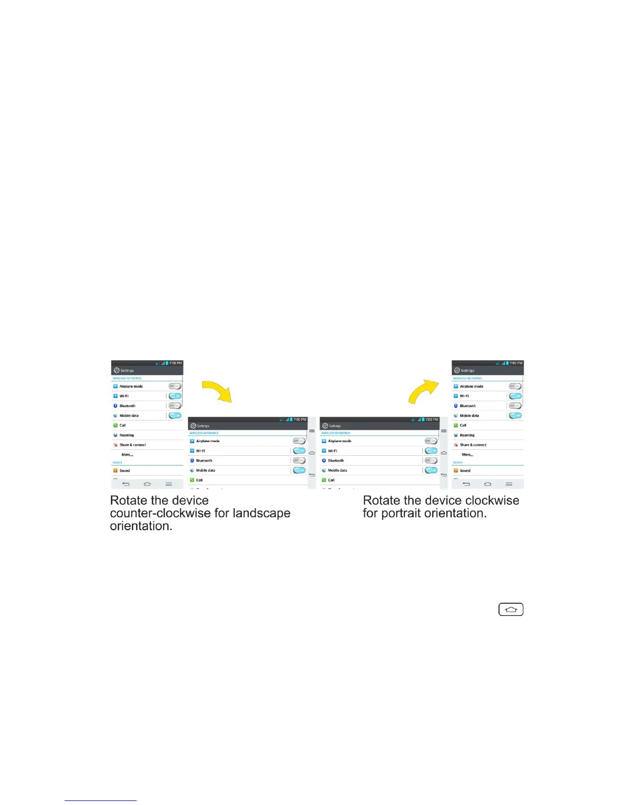 ● Rotate the screen: From many applications and menus, the orientation of the screen