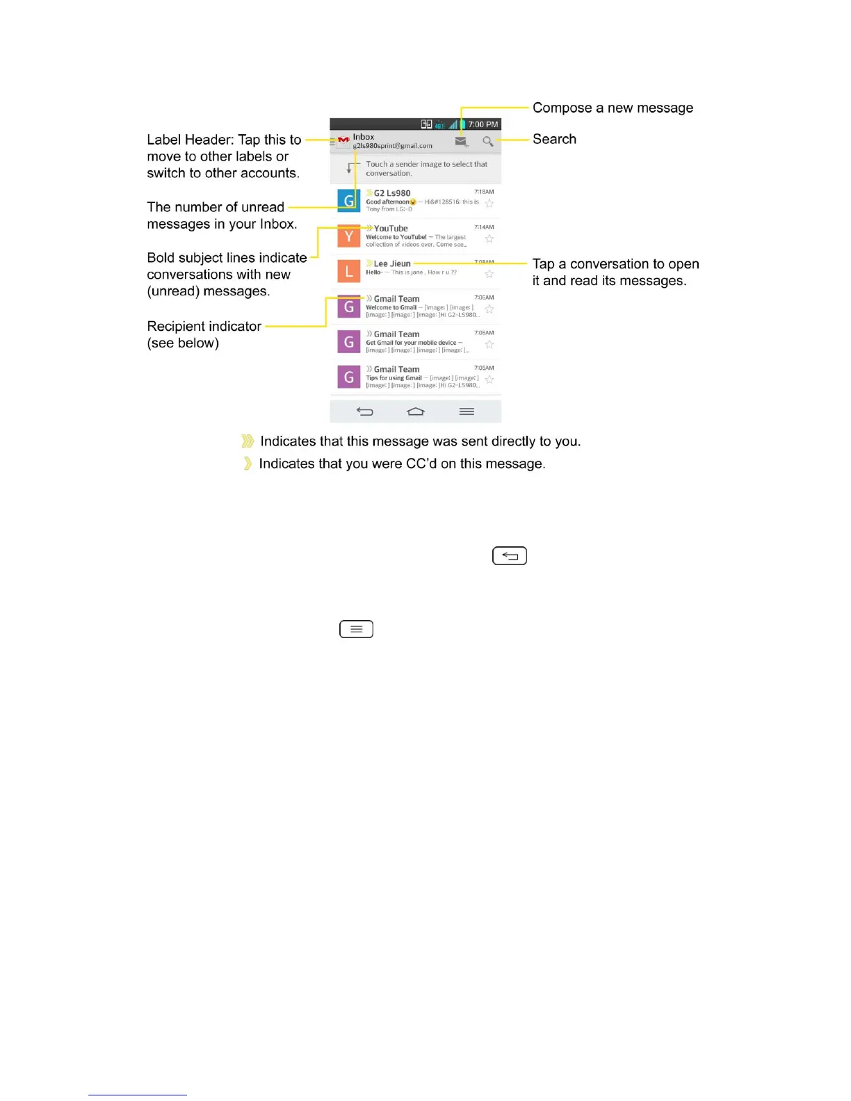 ► If you are viewing a message or another label, tap until you return to your Inbox.