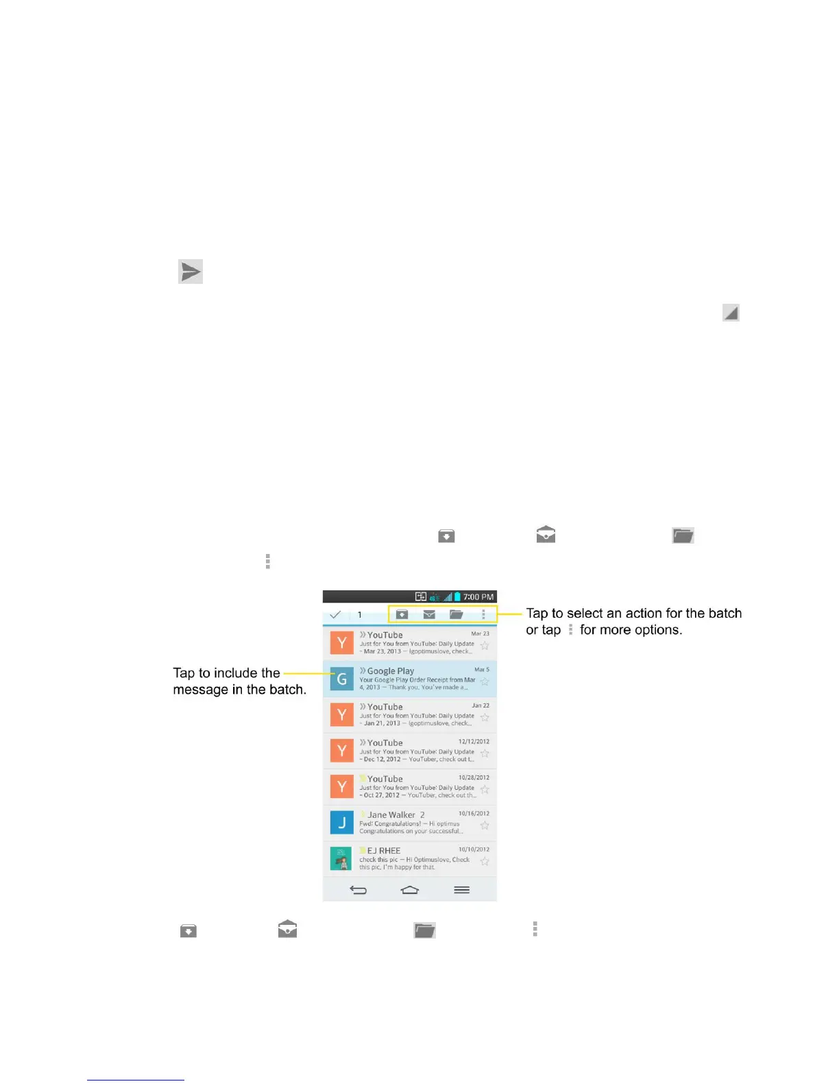 1. From the Inbox or another label, tap the letter or Contact photo to the left of each