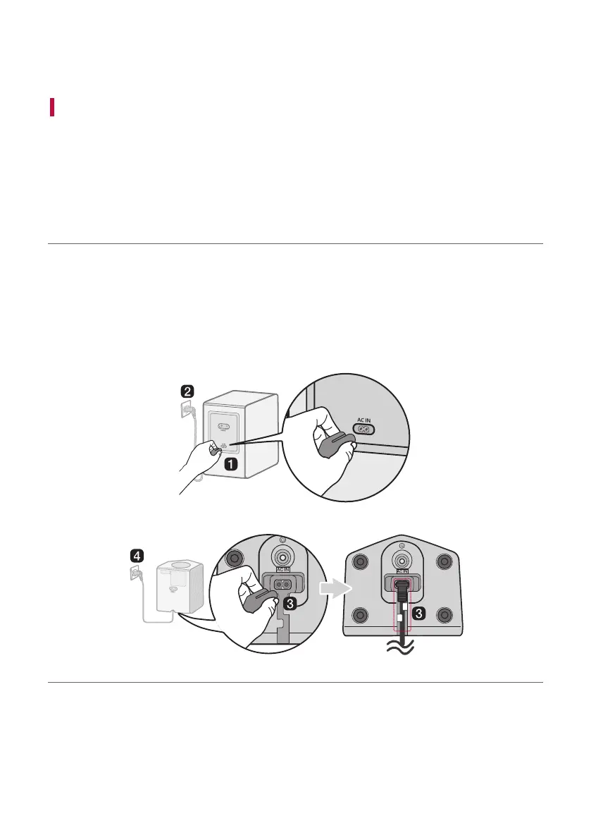 c Plug the power cables into the wireless rear speakers and arrange the power cables.
