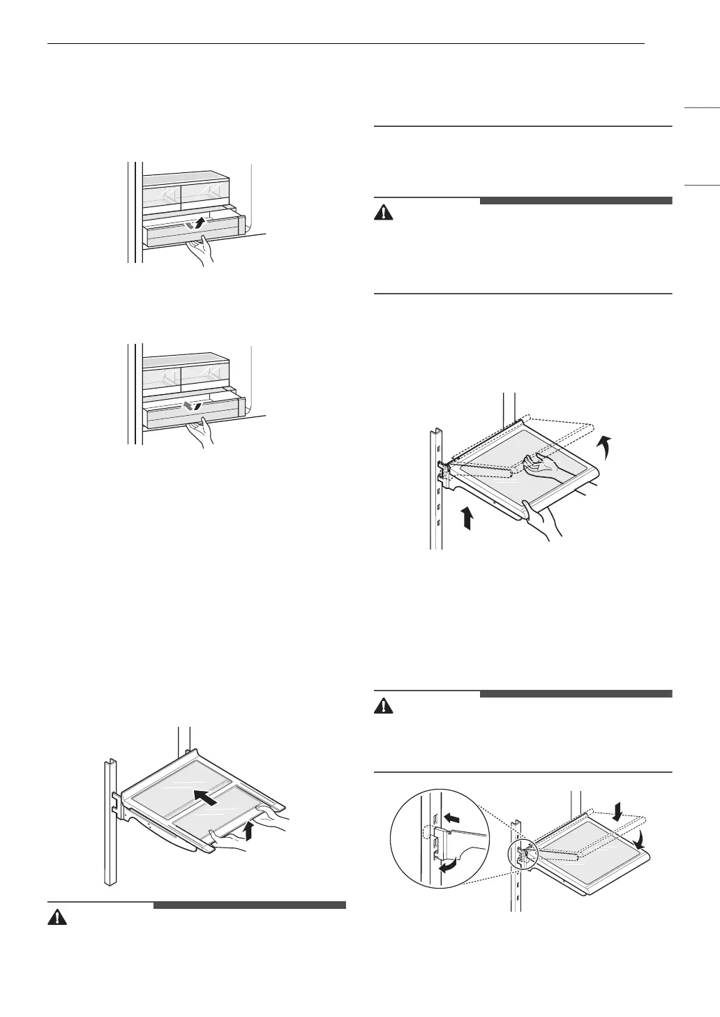 1 To detach, tilt up the front of the shelf and lift