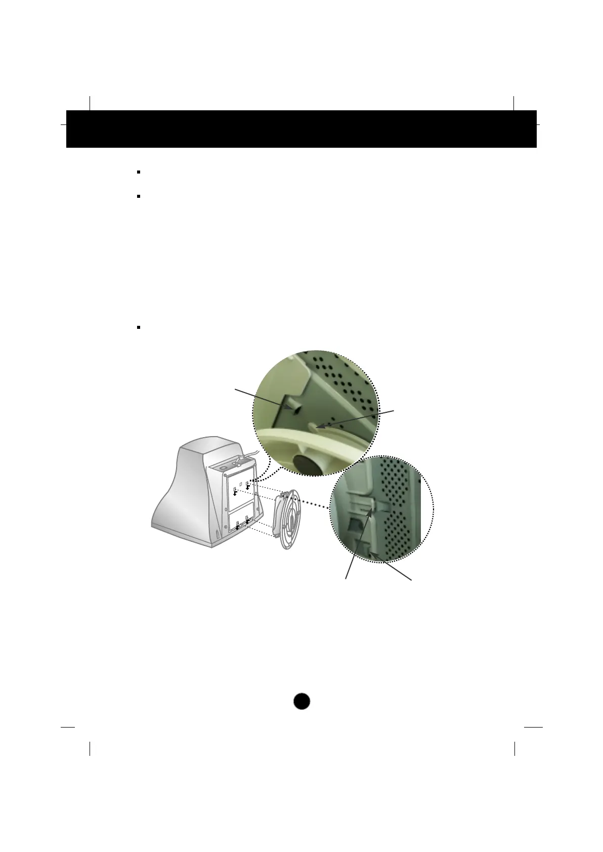 1.Align the hooks on the tilt/swivel stand with the matching slots in the base of