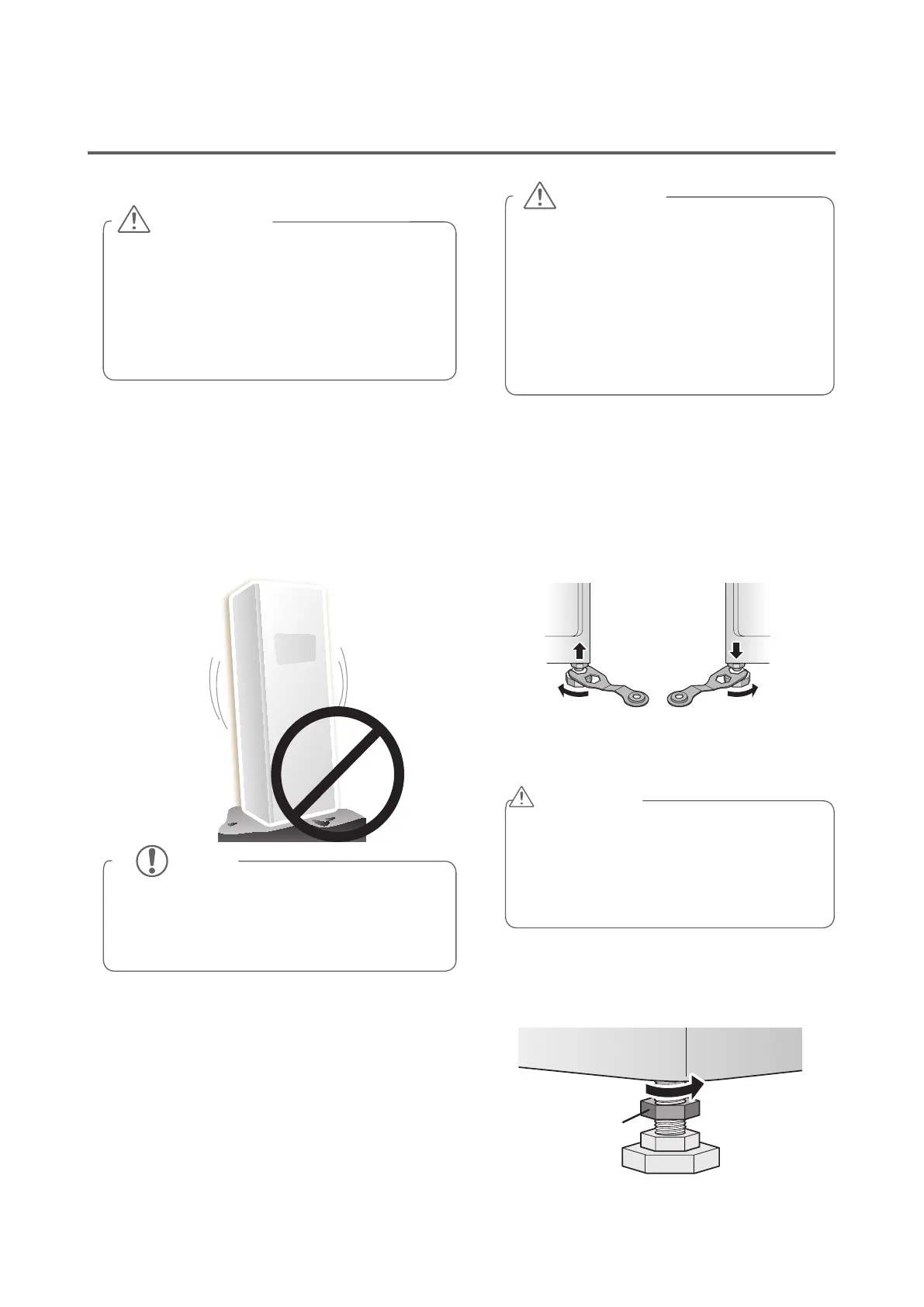 y All leveling feet must rest solidly on the