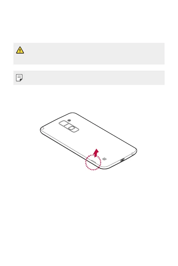 gösterildiği gibi diğer elinizin başparmağını kullanarak arka kapağı