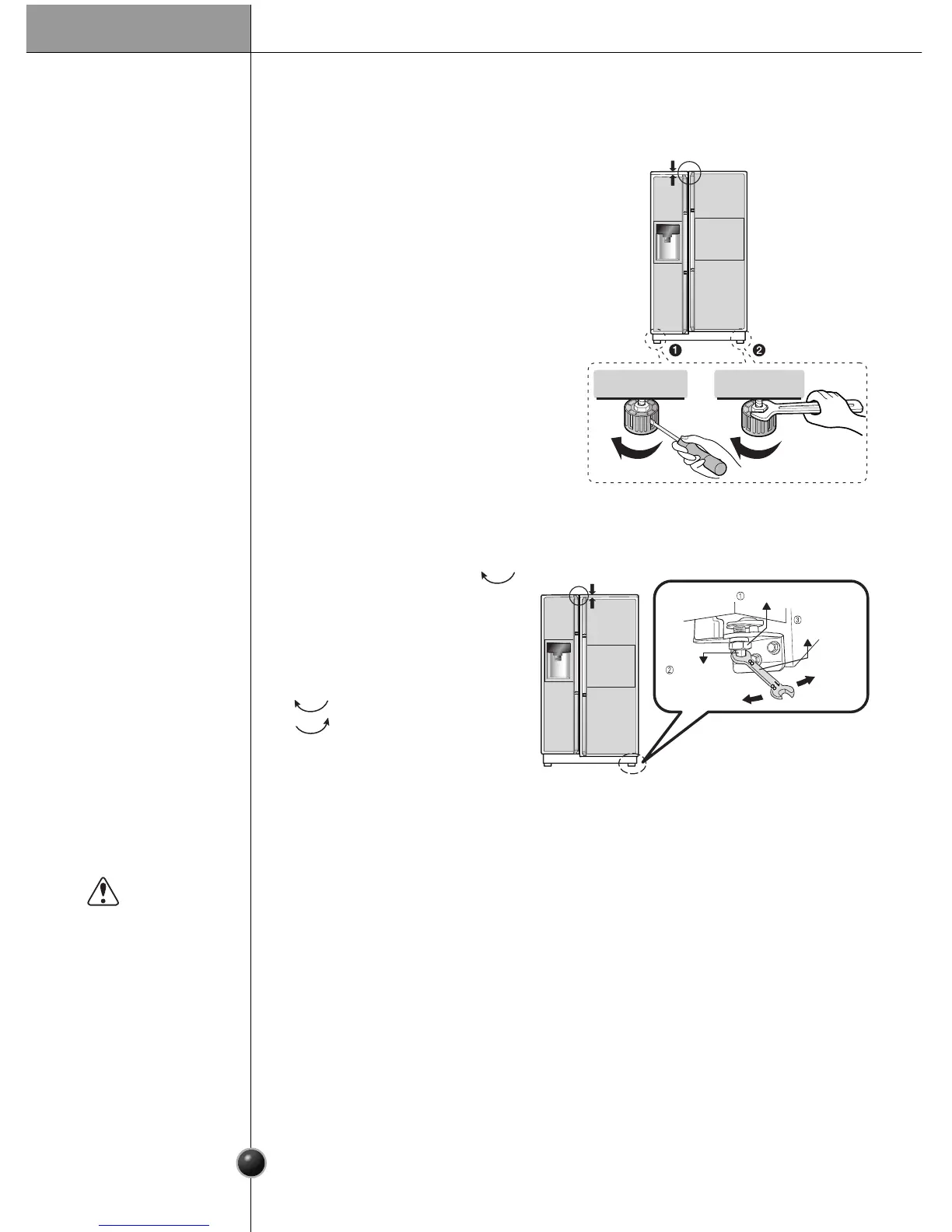 The refrigerator doors will close smoothly by heightening the front side by adjusting