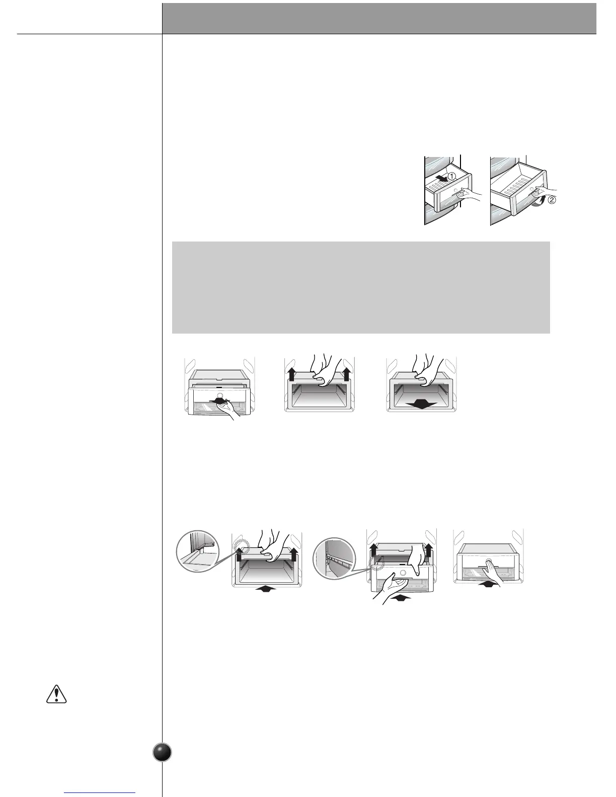 - When disassembling/reassembling the fresh compartment of the fridge, open the