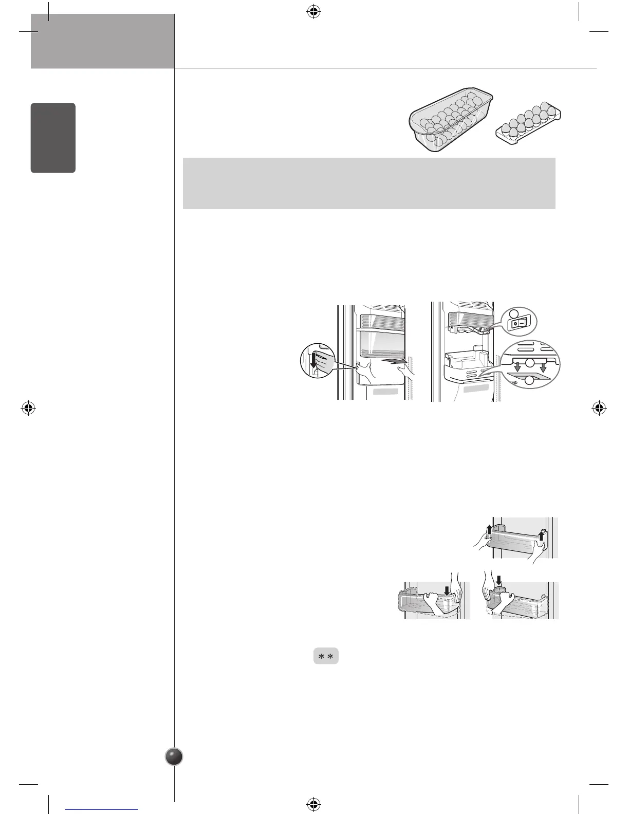 Never use the egg box as an ice storage bin. It can be broken.