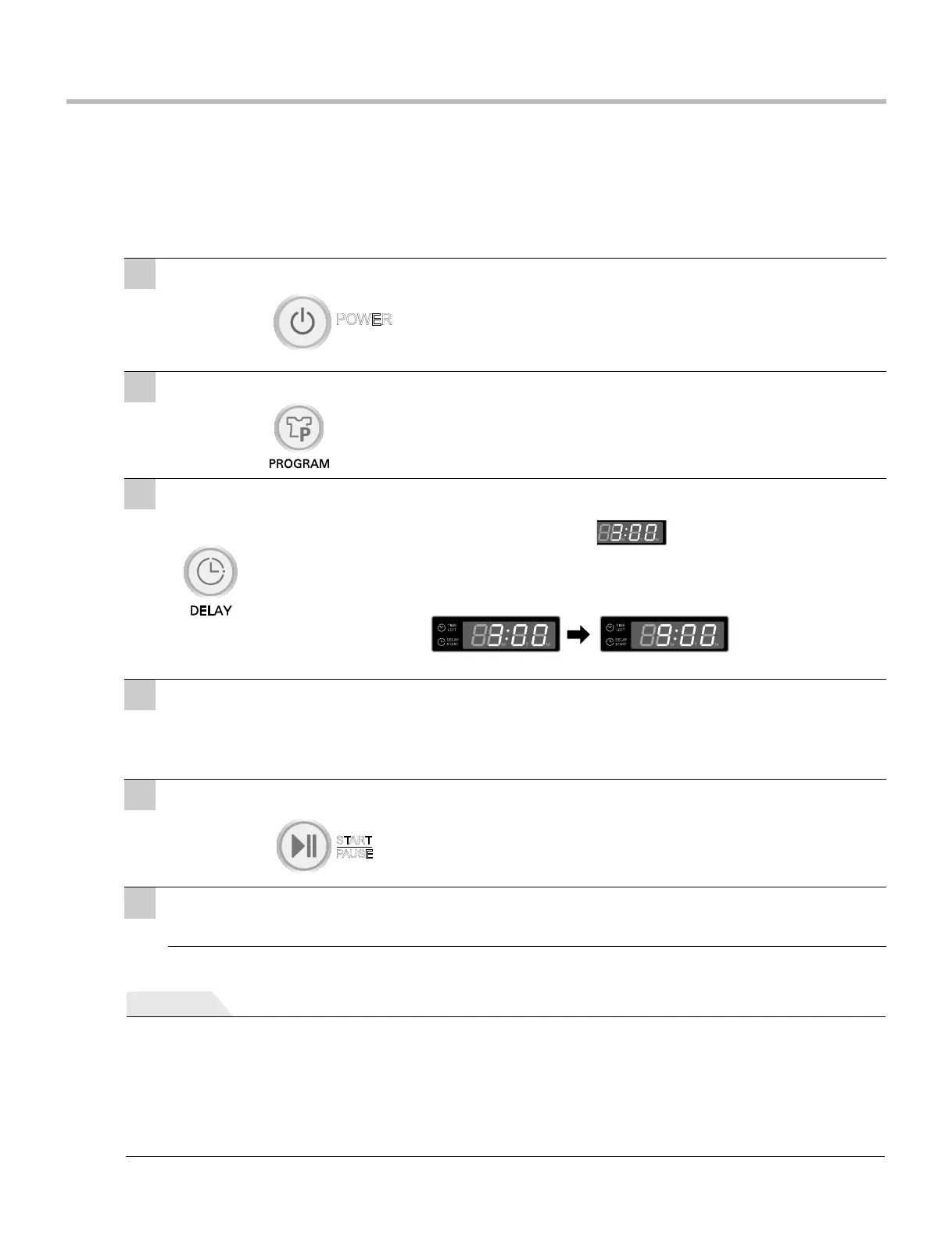 DELAY START (RESERVATION) Wash is used to delay the finishing time of the operation.
