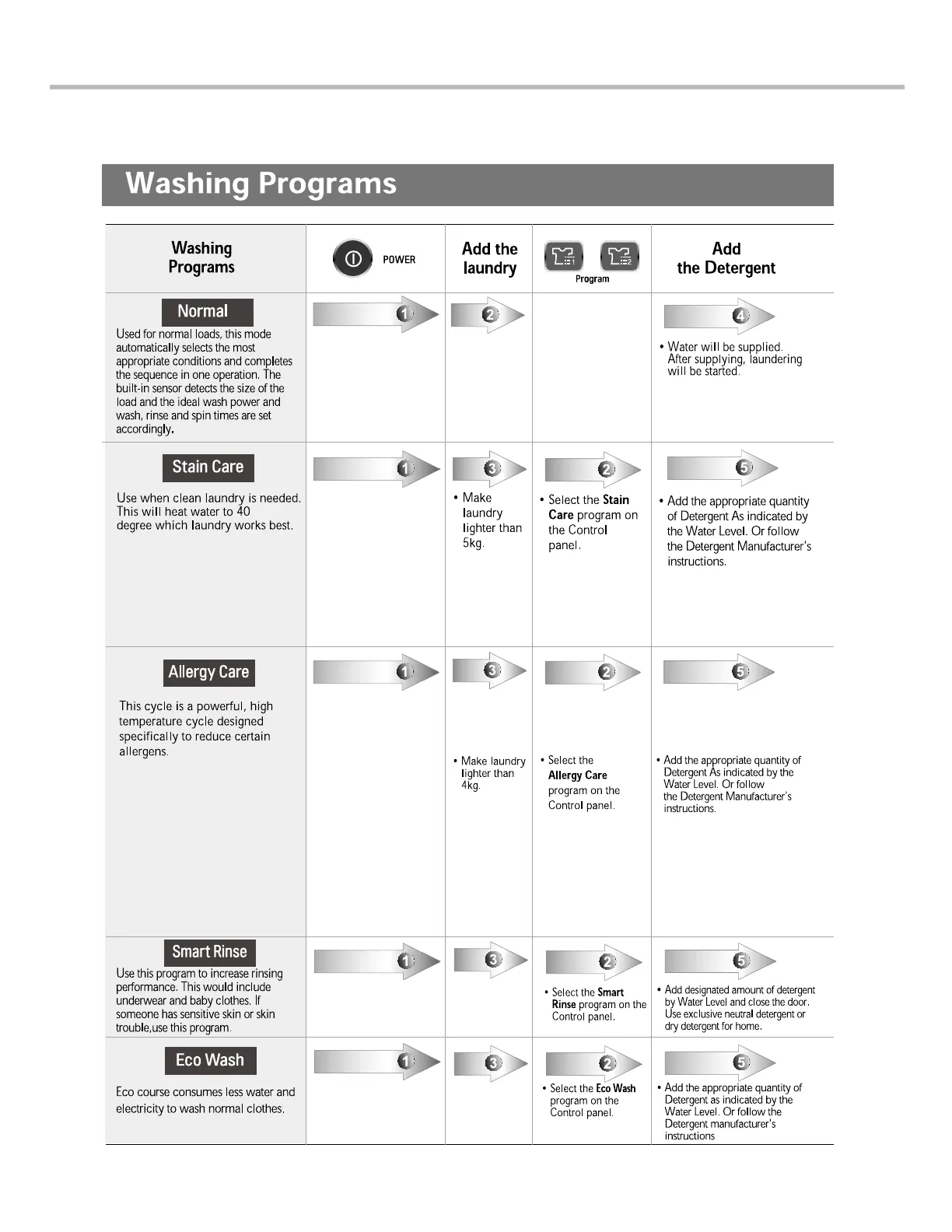 3-4. WASHING PROGRAMS