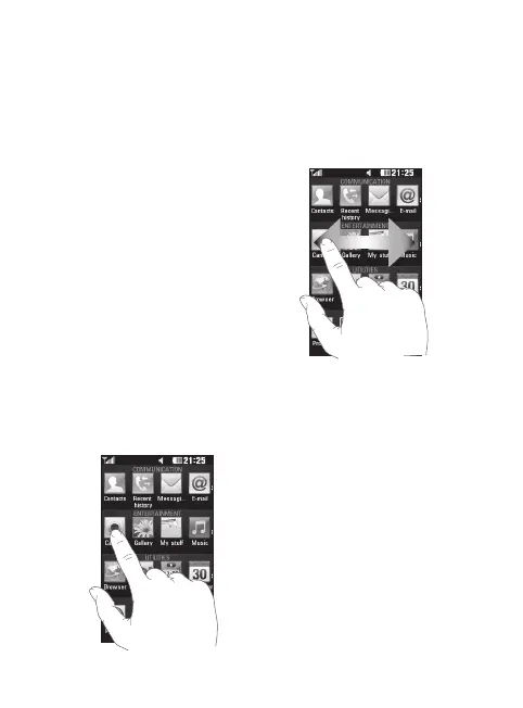 • To select an item, touch the centre