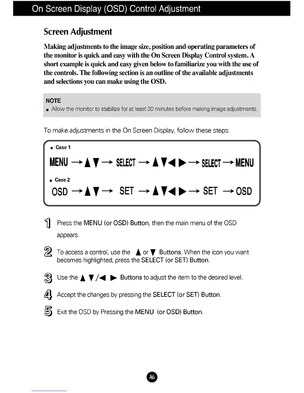 LG T910B - On Screen Display (OSD) Adjustments; OSD Screen Adjustment Overview