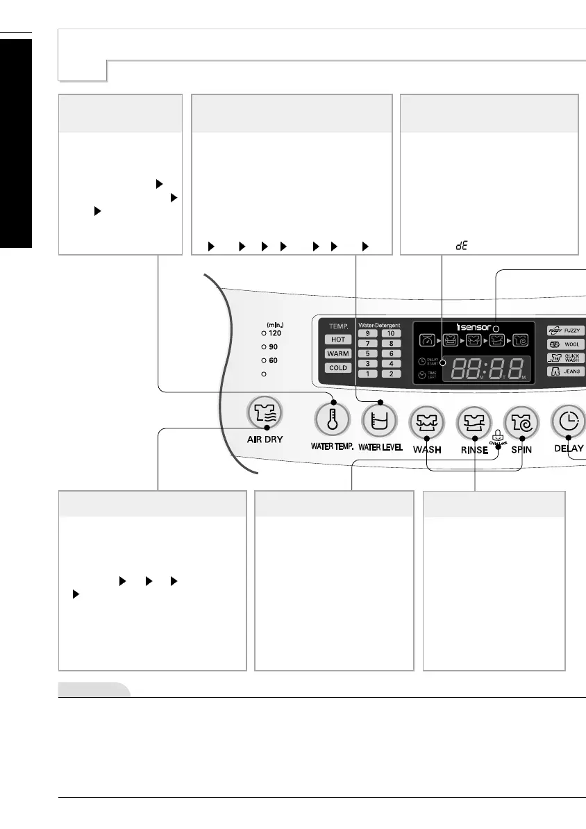 • Air dry selections light up in sequence as