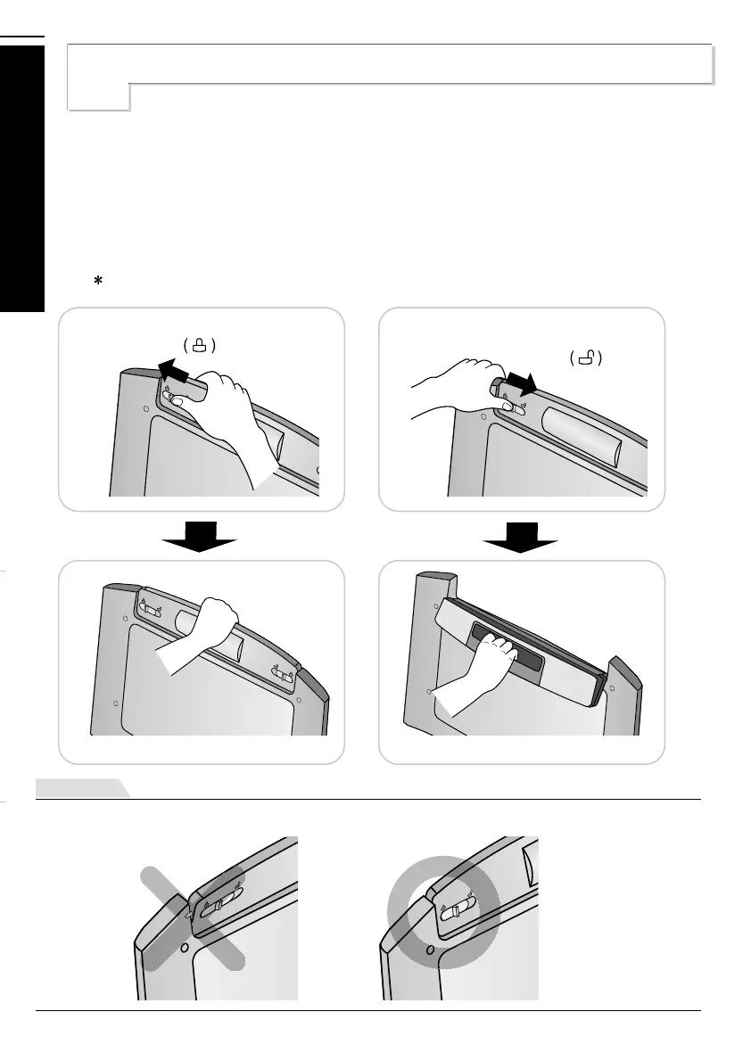 • To lock the handle in back in place, push the locking slides towards the outside of the lid.