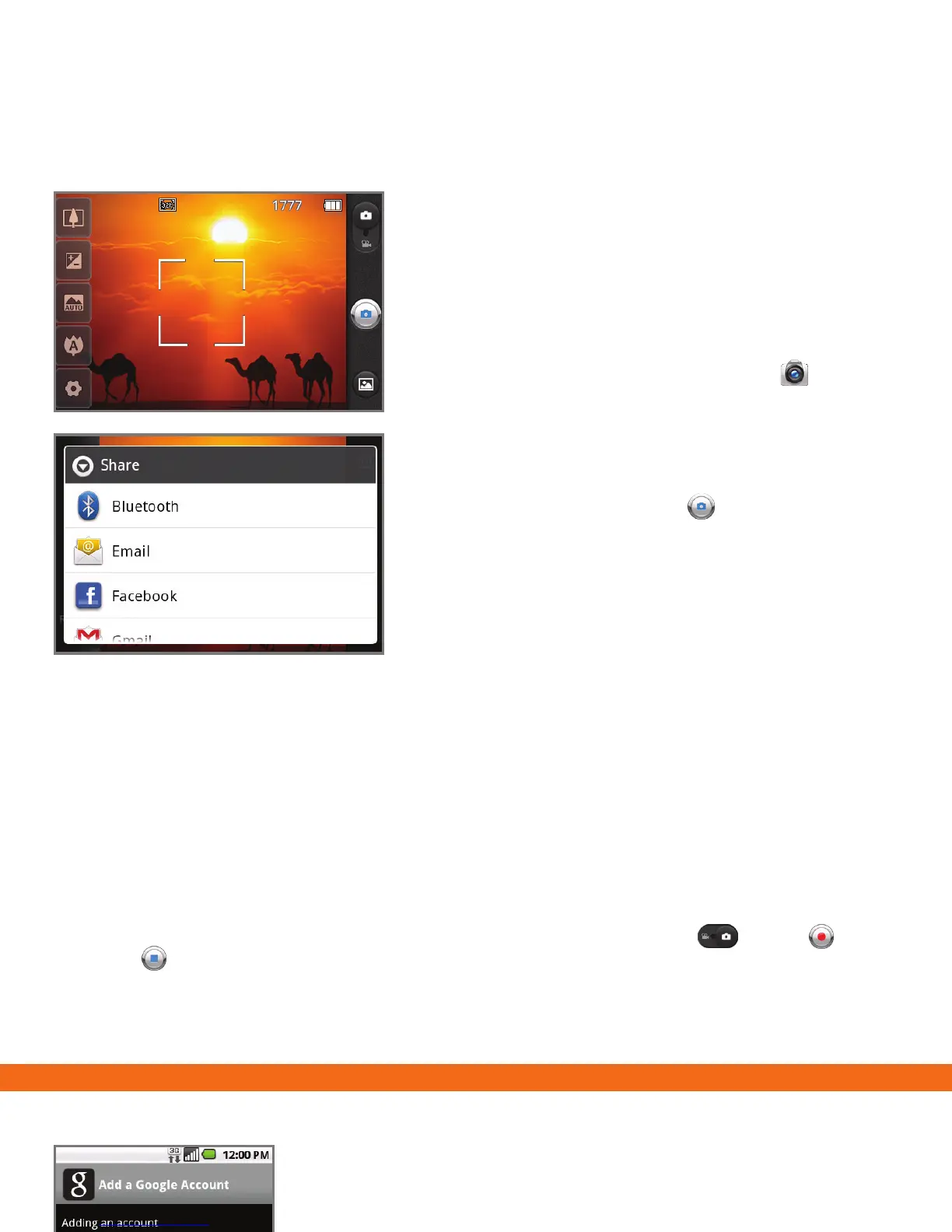 Note: To use the camcorder, slide the camera indicator to camcorder . Touch to