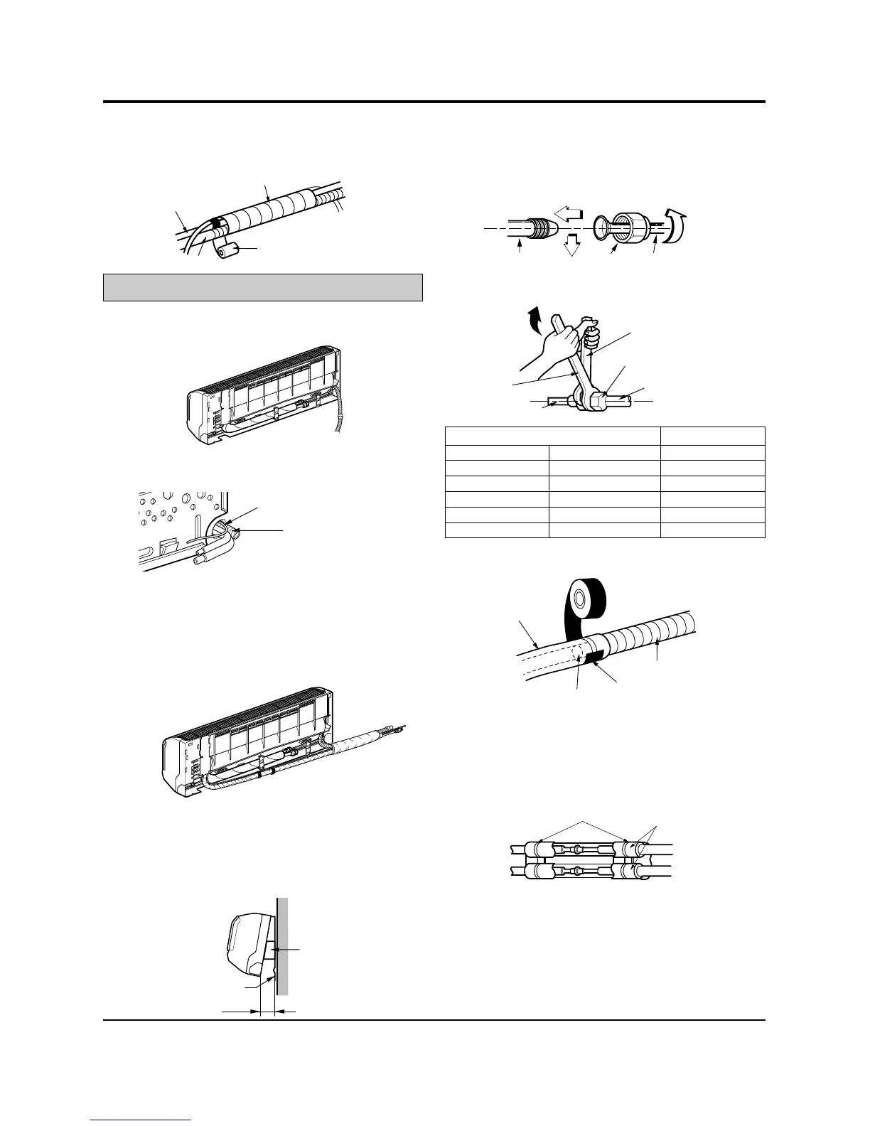 • Bundle the piping and drain hose together by wrapping
