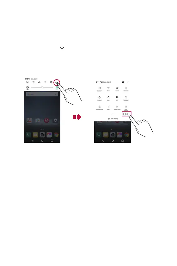 Ţ To open the quick access icons list, drag the notifications panel