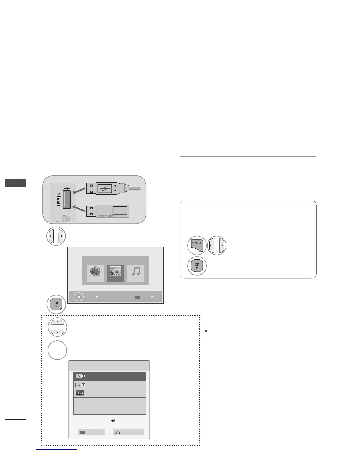 When the Pop Up menu appears, you can select Music List, Photo List or Movie List in the MY MEDIA