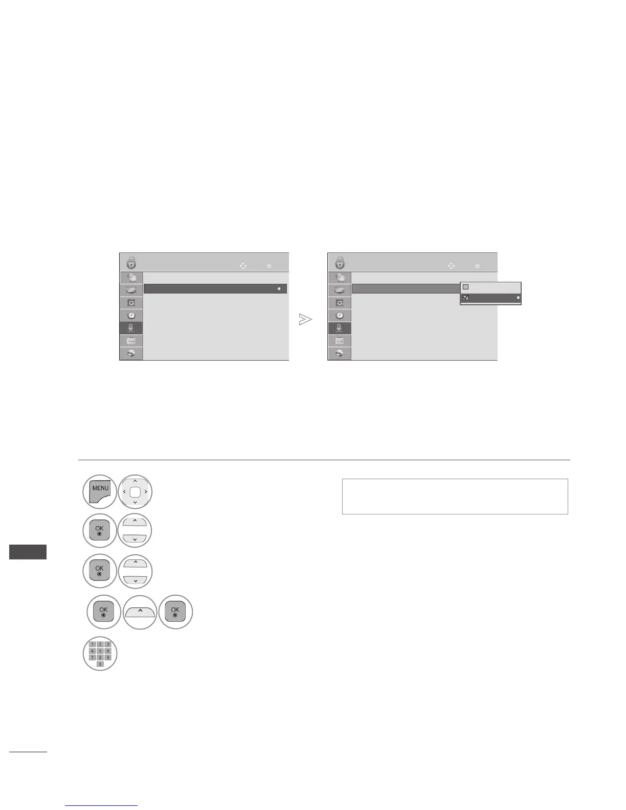 Enter the password, press ‘0’, ‘0’, ‘0’, ‘0’ on the remote control handset.