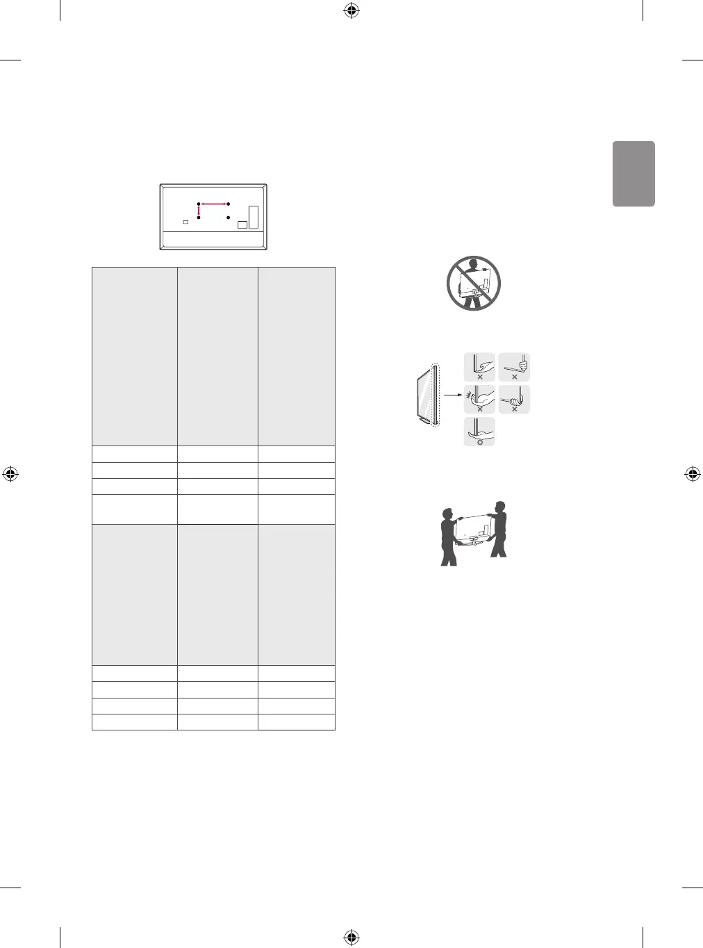 • Hold the top and bottom of the TV frame rmly. Make sure not to