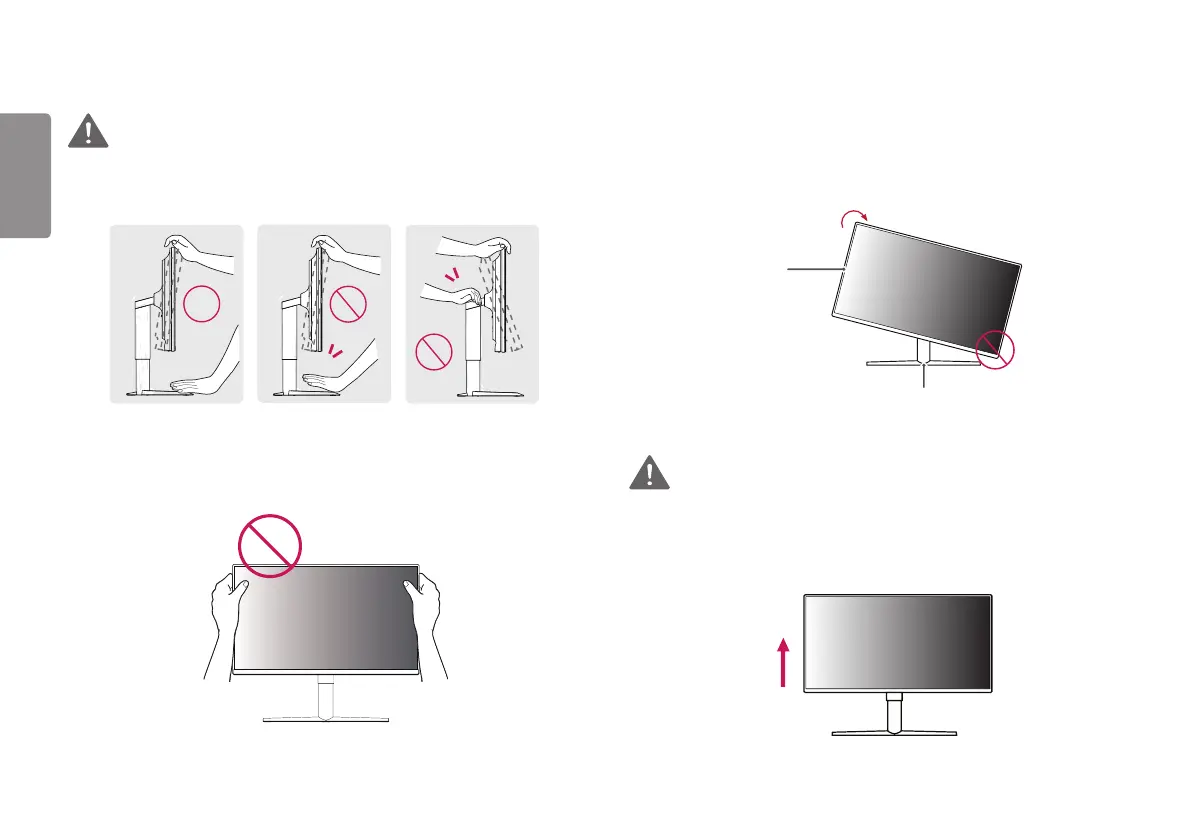 • Be careful not to touch or press the screen area when adjusting the angle of the