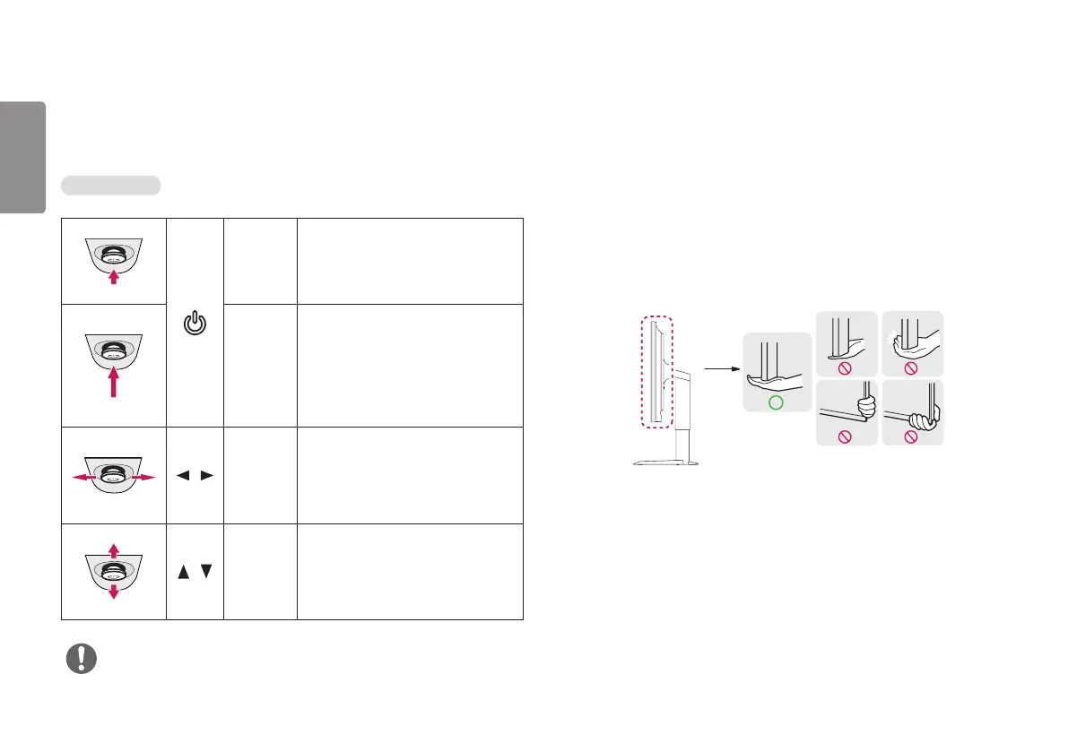 • Hold the bottom and side of the monitor frame firmly. Do not hold the panel itself.