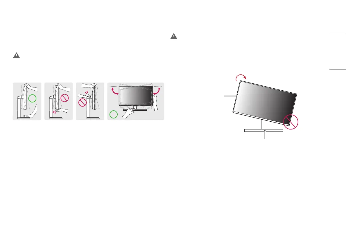 • To avoid injury to the fingers when adjusting the screen, do not hold the lower part of the monitor’s frame as