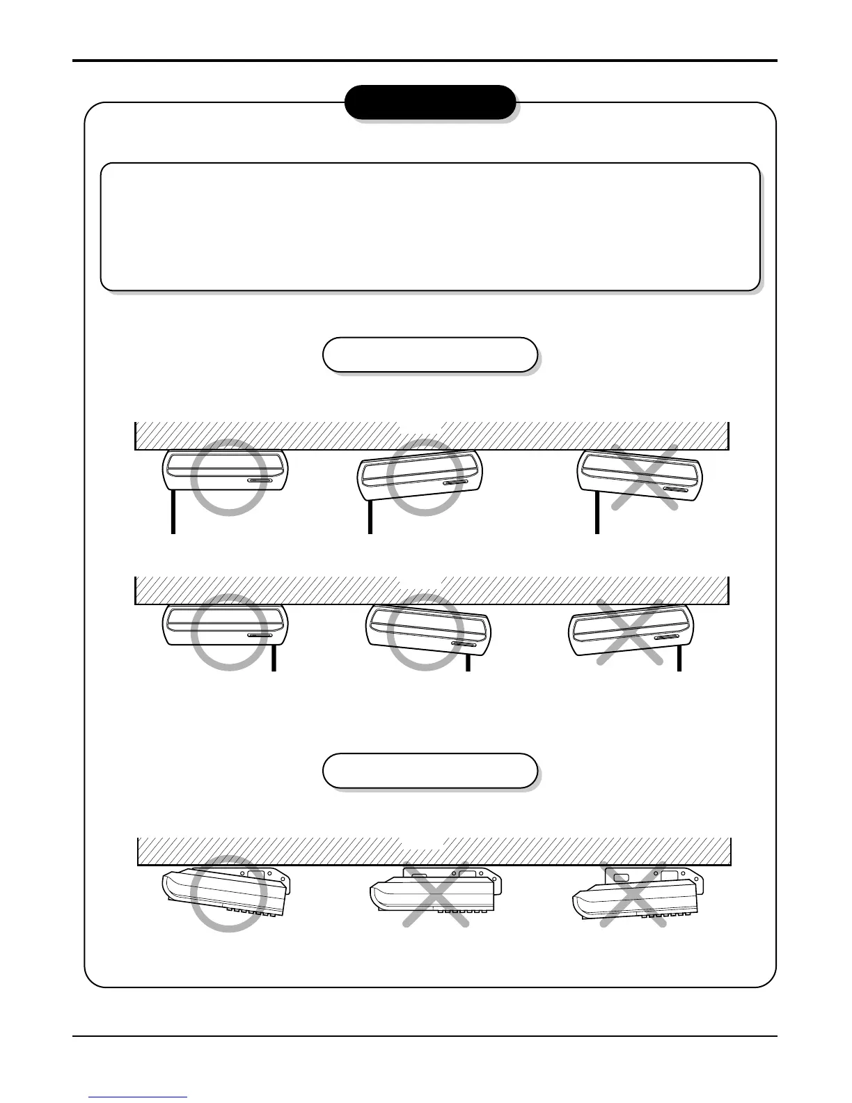 • The unit must be declined to the bottomside of the unit when finished installation.