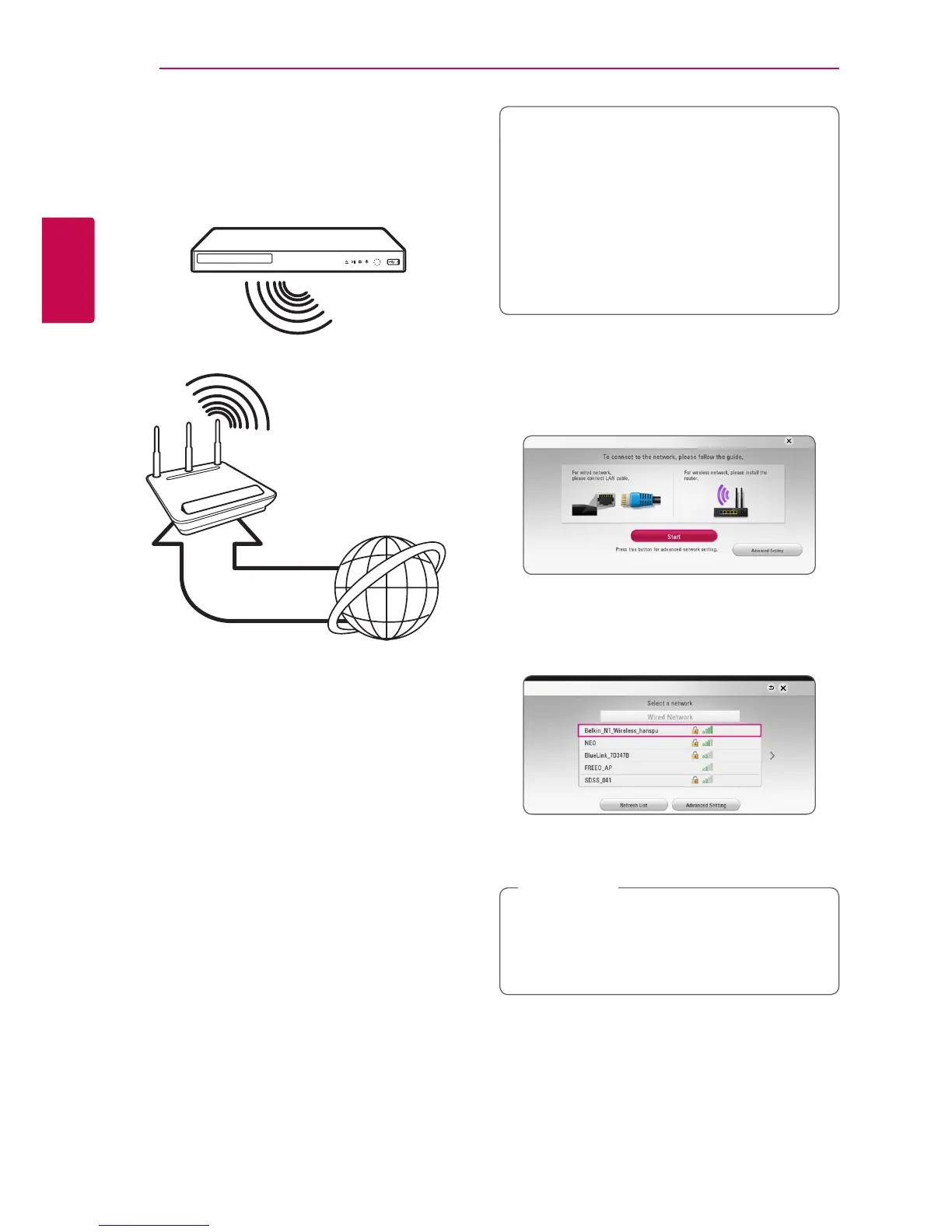 For the wireless network connection, the player