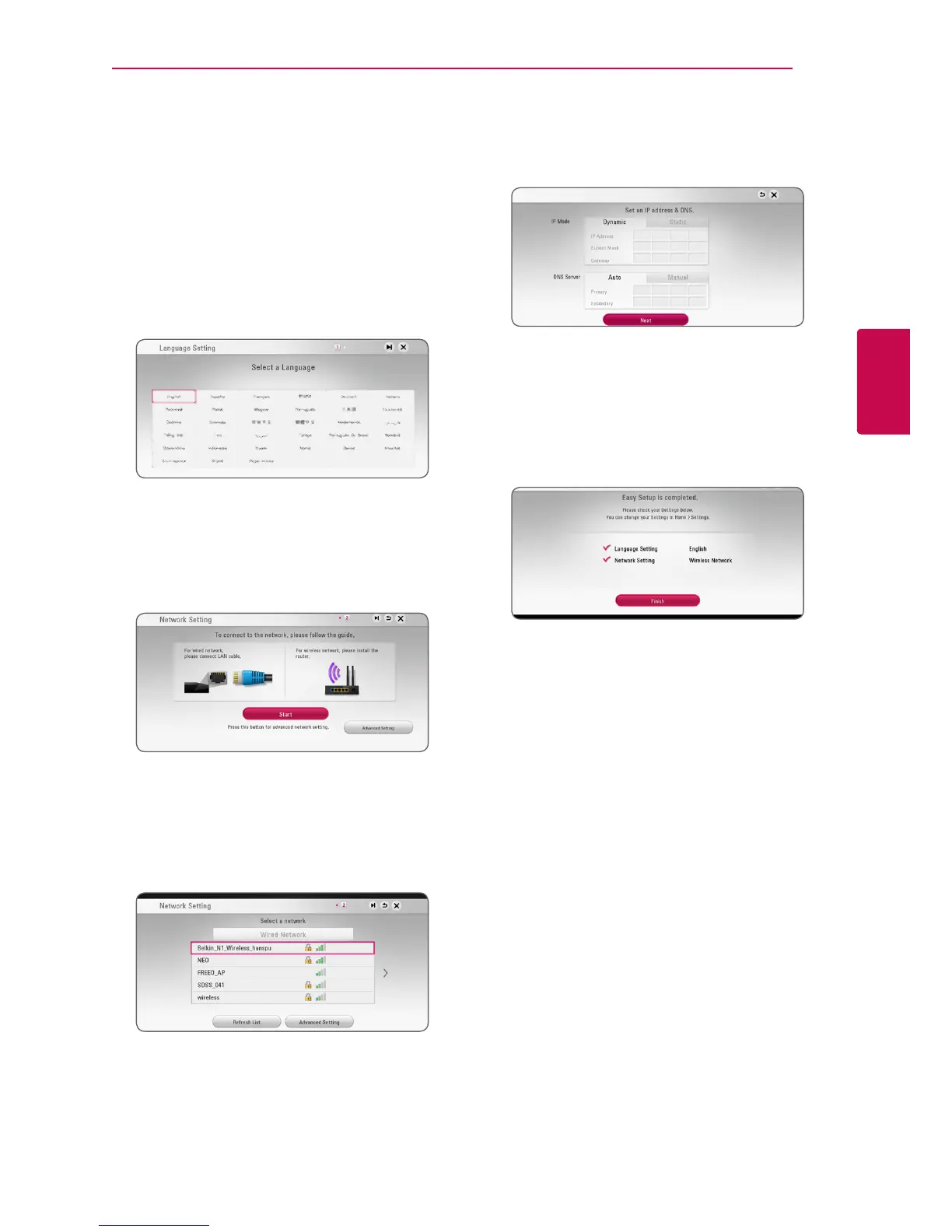 initial setup wizard appears on the screen. Set the