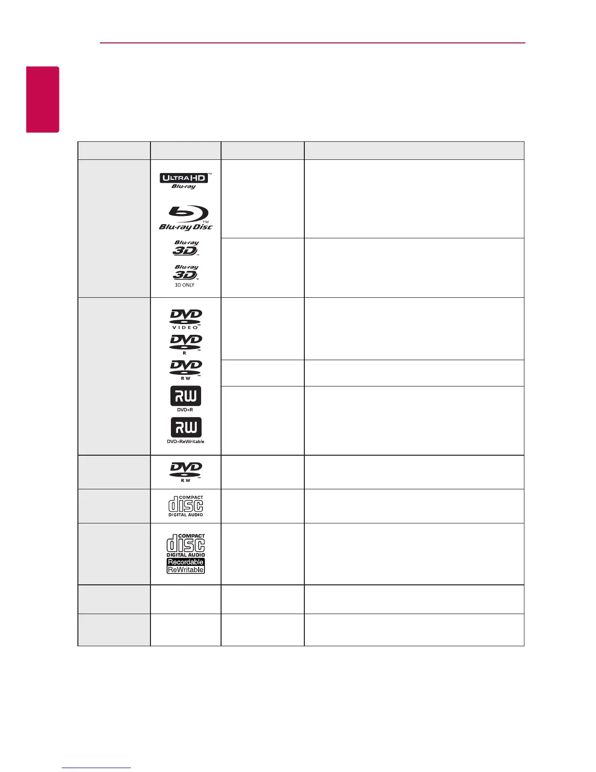 Playable Discs and symbols used in this manual