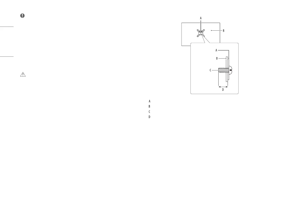 • Applying excessive force when tightening screws may cause damage to the monitor. Damage caused in this