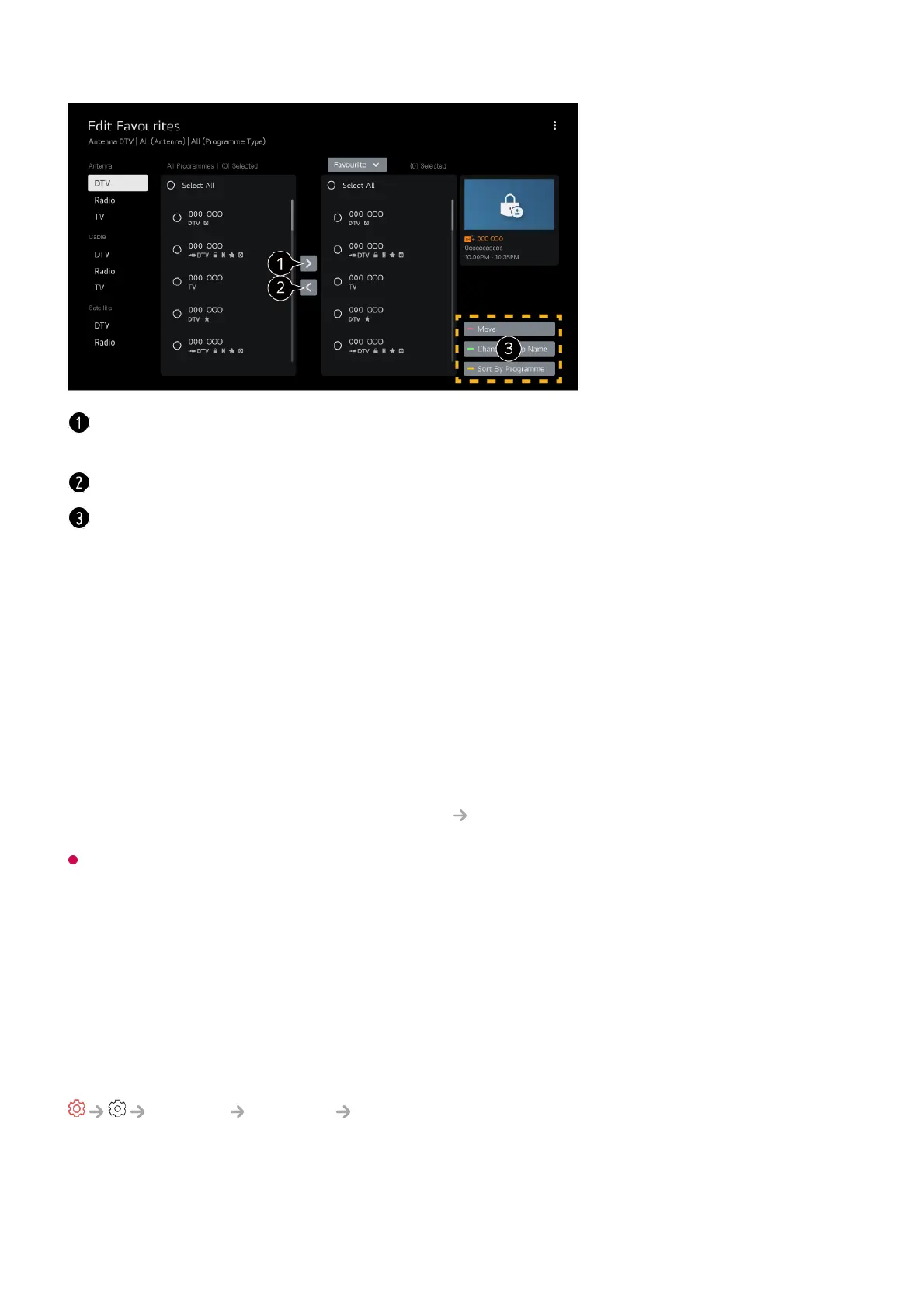 Move : Select one or more programmes in the Preferred Programmes list, press the Move