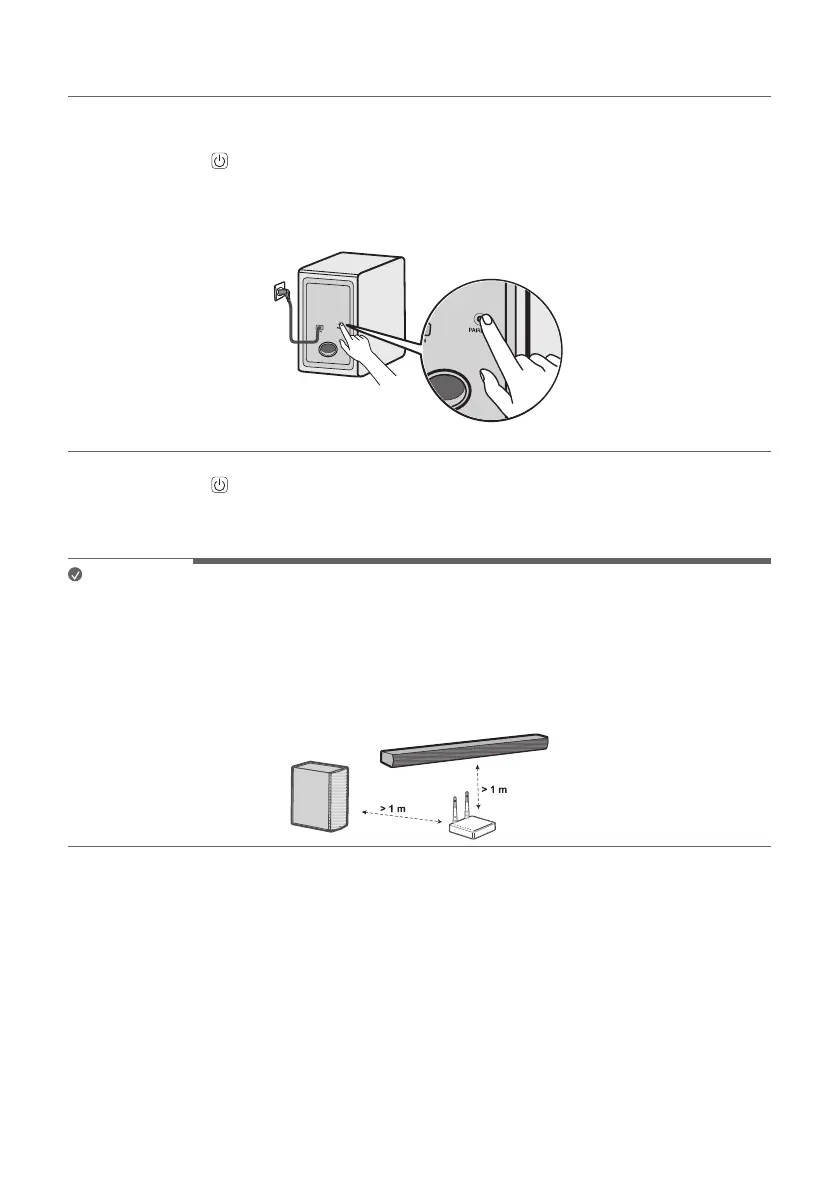 • To prevent wireless interference, maintain a distance of at least 1 m between the soundbar or the