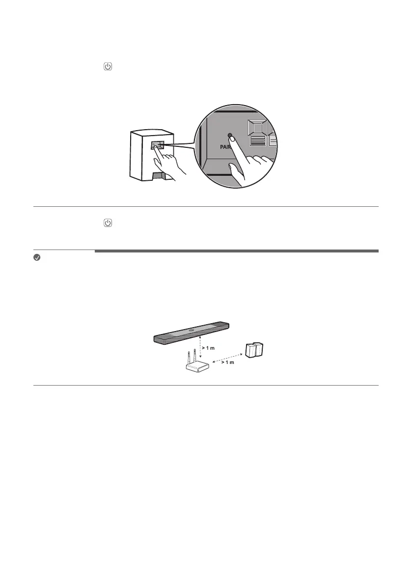 • To prevent wireless interference, maintain a distance of at least 1 m between the soundbar or the rear