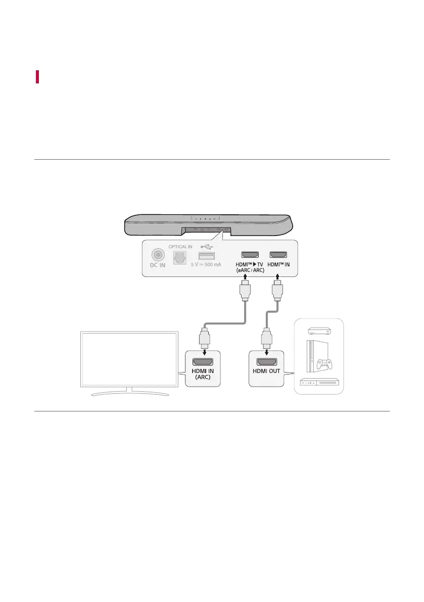 b Using the HDMI cable, connect the HDMI™ d TV (eARC / ARC) terminal on the back of the product to the